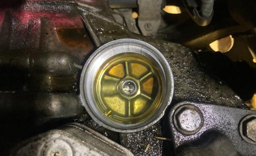 - Povolíme víko olejového filtru (ořech vel. 24). Vyndáme vložku filtru, a starý olej odsajeme.