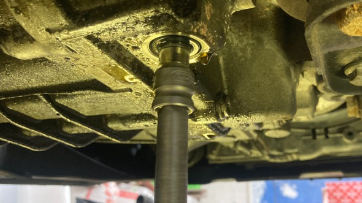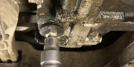 - Dole pod autem vytočte adaptér, a vyteče vám cca 0,5 litrů oleje. Jakmile bude olej jen kapat namontuje zátku s novým těsněním a dotáhněte na předepsaný moment.